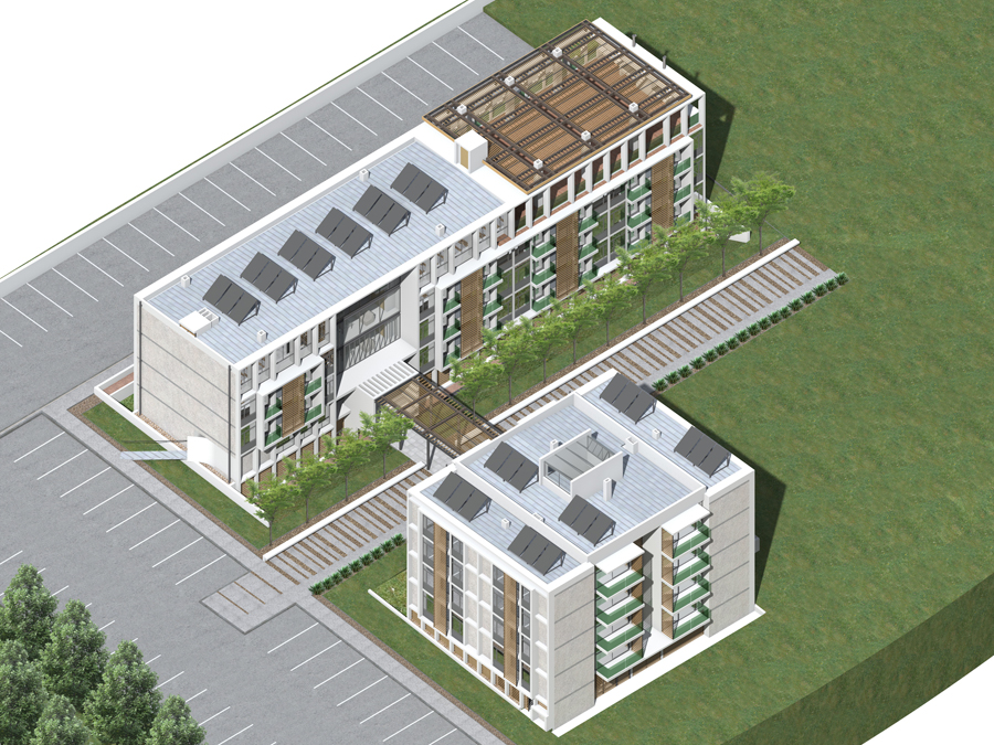 Edificio «B» de dormitorios colectivos en cuatro pisos.