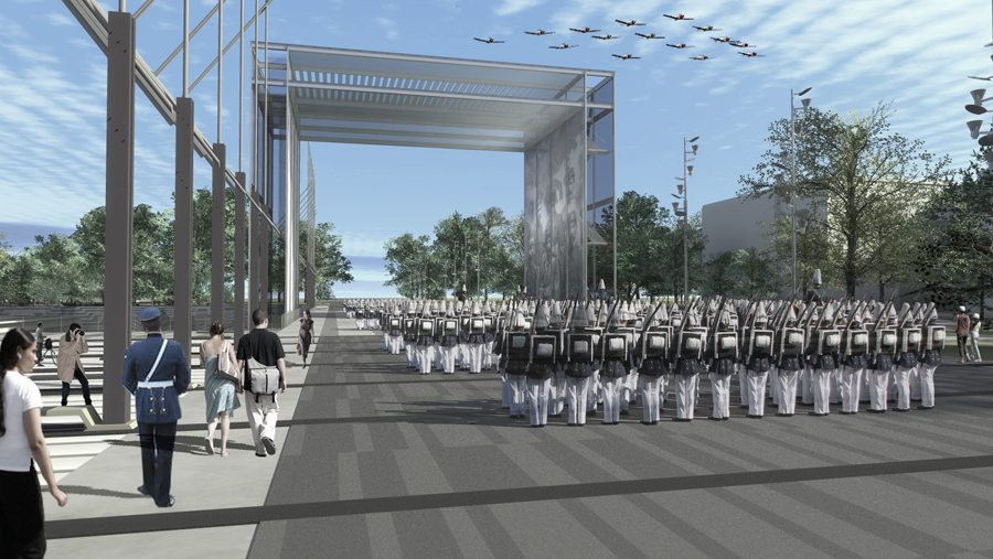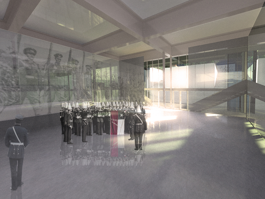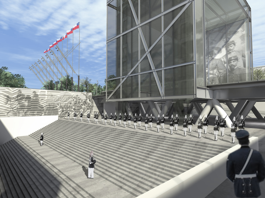 Este conjunto se concibe como un lugar de comunión en donde se conjugan de modo simbólico tres tiempos que representan a una institución que cumple junto con el país 200 años de vida. La idea de resumir el PASADO, el PRESENTE y el FUTURO, del Ejército de Chile a través de una imagen arquitectónica y un espacio urbano de carácter simbólico, representativo y educativo.