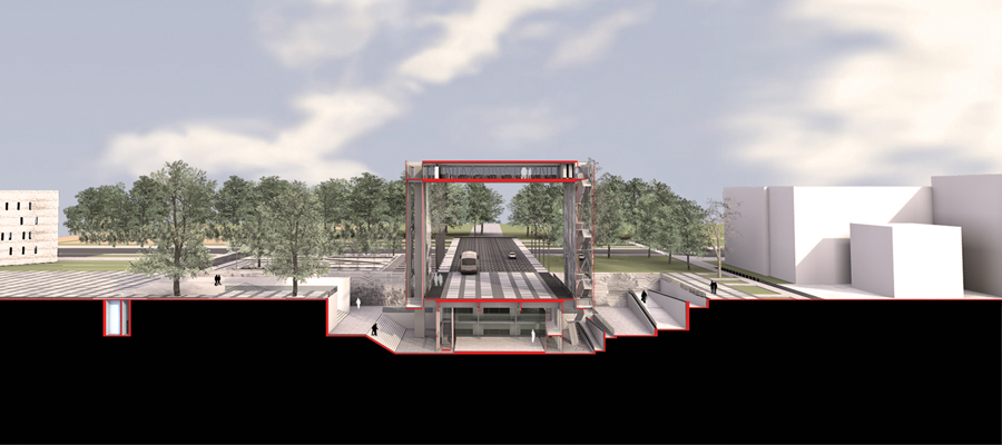 El proyecto se compone de tres piezas fundamentales, altamente legibles, cada una de ellas representa una manera de generar una huella recordable y memorable de la institución hacia los ciudadanos. Tres espacios, tres imágenes encarnan la realidad de esta obra, La Plaza, El Arco y El Memorial, un plano de encuentro, un arco o umbral y un vacío urbano a desnivel (nivel N – 6 metros) que invita a recorrer y a entender desde otra perspectiva otra dimensión del Ejército.